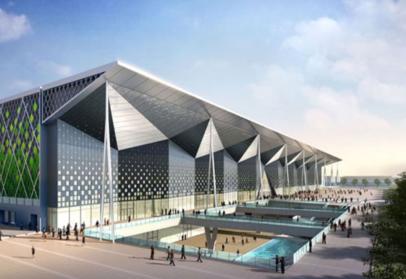 團——26個平均用地規(guī)模約為2~3公頃的“展館團”,每個“展館團”可布置40~45個辦展單元,每個“展館團”的總建筑面積約2~2.5萬平方米。每個團按方便和就近的原則,設置小型餐飲、購物、電信、廁所、母嬰服務等公共服務設施。